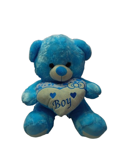 / דובי פרווה 65 ס"מ כחול עם לב וכיתוב BOY
