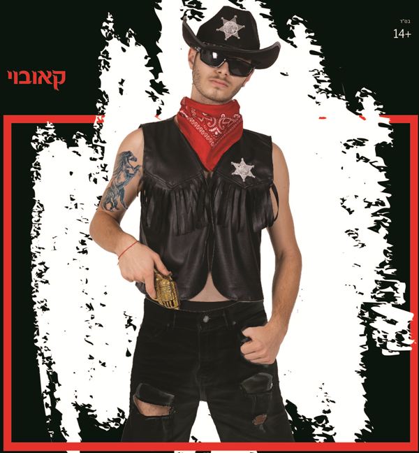 וסט, כובע, בנדנה ומשקפיים .