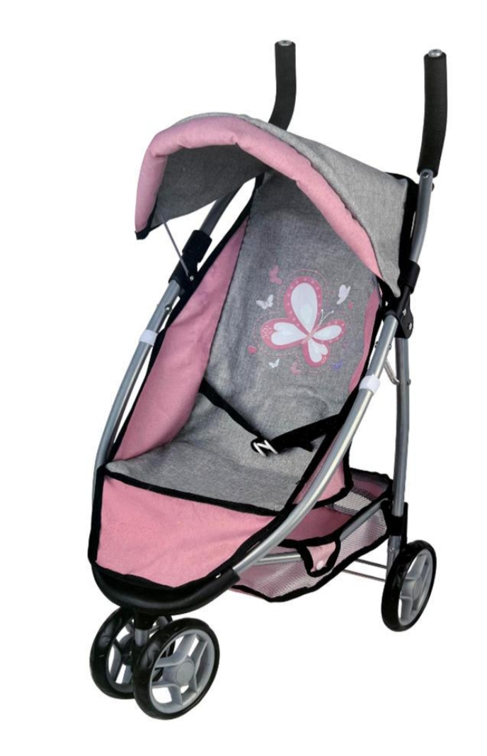 עגלה טיולון לבובה אפור ורוד גדולה – IPOP